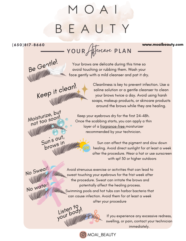 Once we’re finished, we’ll book your complimentary touch‑up (4–6 weeks later) and walk you through your personalized aftercare plan. We’ll explain exactly how to care for your new brows so they heal beautifully. If you have any questions at all—now or later—we’re here to support you.